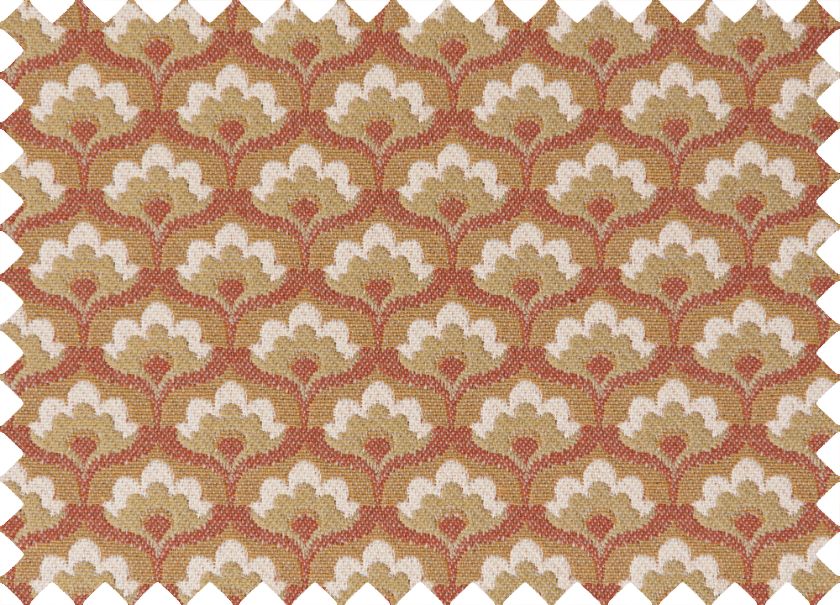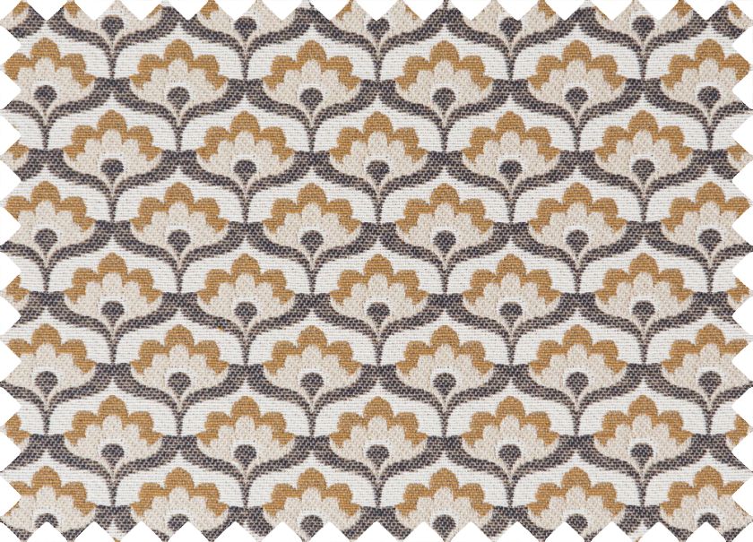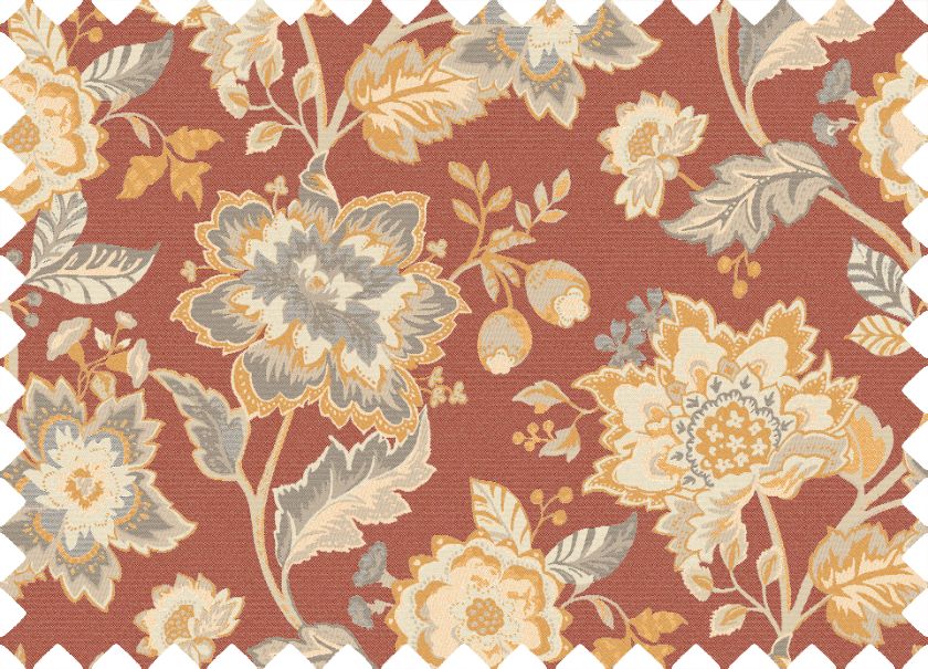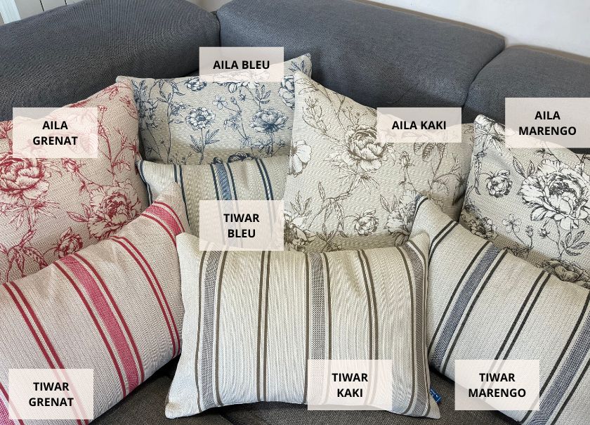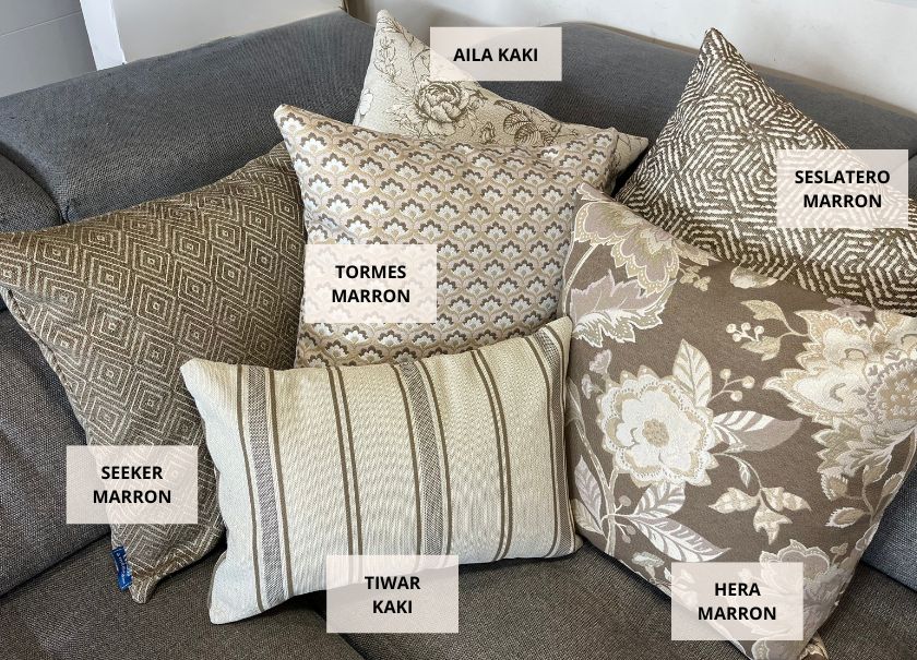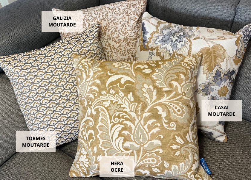Des motifs floraux et des jacquards dans des tons terre, ocre et bordeaux se marient harmonieusement avec des unis et semi-unis, créant des espaces sophistiqués et accueillants.